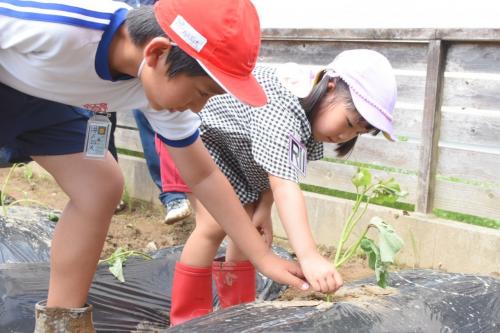 6月23日(水)、南方小の5年生と一緒に芋の苗植えをしました♪