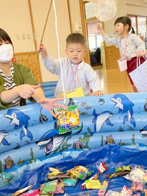 みんな大好き【 お菓子釣りコーナー 】です!たくさんのお菓子を見て、