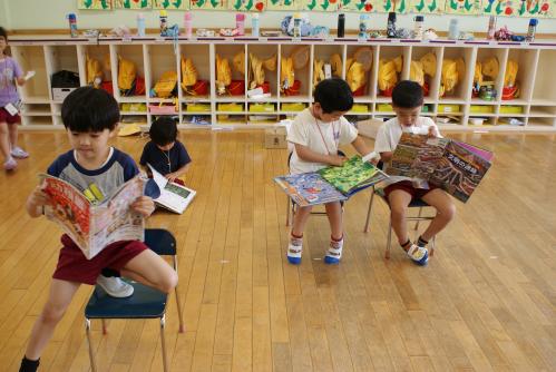西階幼稚園には、延岡市図書館バスふくろう号が月に2回来てくれます♪