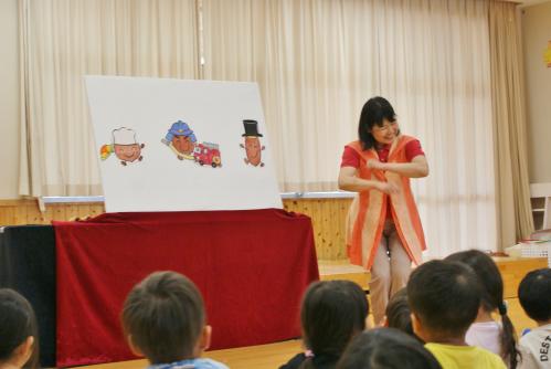 見て楽しむだけでなく、パネルシアターを見ながら手遊びをしたり、歌ったり、踊ったり、頭にタオルを乗せてカッパになりきって体を動かしたり、子ども達は終始笑顔いっぱいでした!!