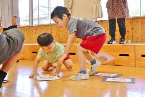 全クラス合同で、体操したり、ゲームをしたりして、親子のふれあいを楽しみました♡