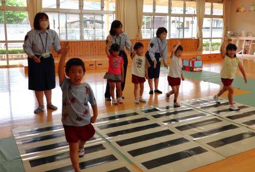 手をまっすぐ伸ばして、上手に渡ることができました🚥
