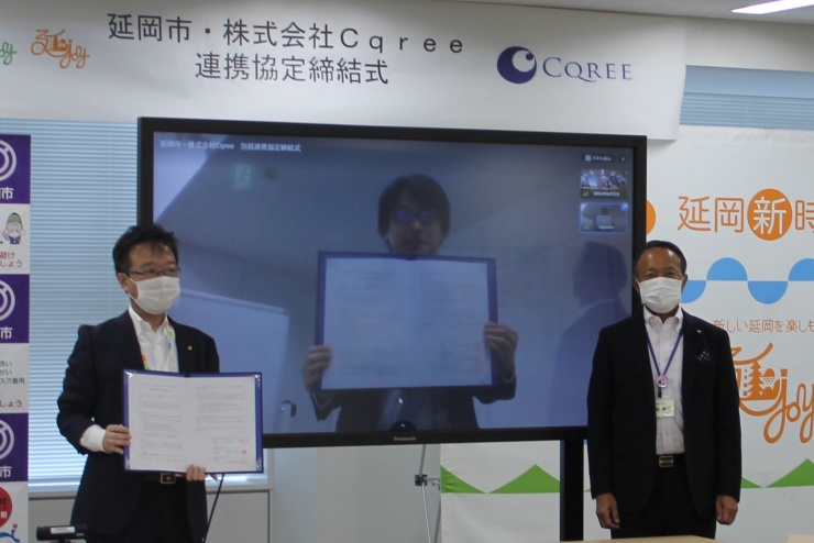 延岡市と株式会社Cqree(本社:東京都)は、それぞれが持つ資源や特長を活かしながら、新型コロナウイルス感染症に対する緊急対策として、テイクアウトやデリバリーなどの「中食」を通じた、本市の飲食店支援及び地域発展を連携協力して進めることを目的に2020年8月17日に連携協定を締結しました。